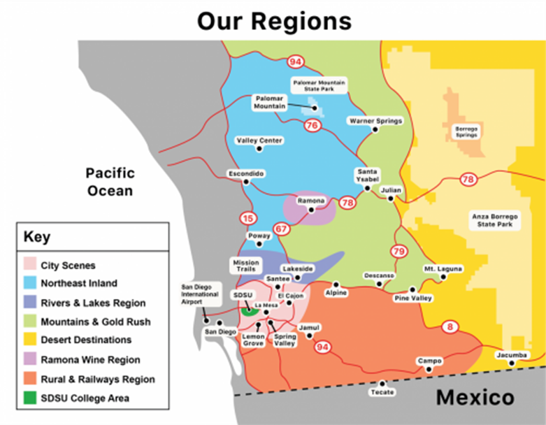 San Diego County’s inland region is home to beautiful mountains, deserts, rural regions, historic highways, rivers and lakes, cities with cultural attractions, and Native American tribal lands. our Visit East County section is your source for info and tips on each region, plus our guides to activities such as adventures, dining, live entertainment and more!