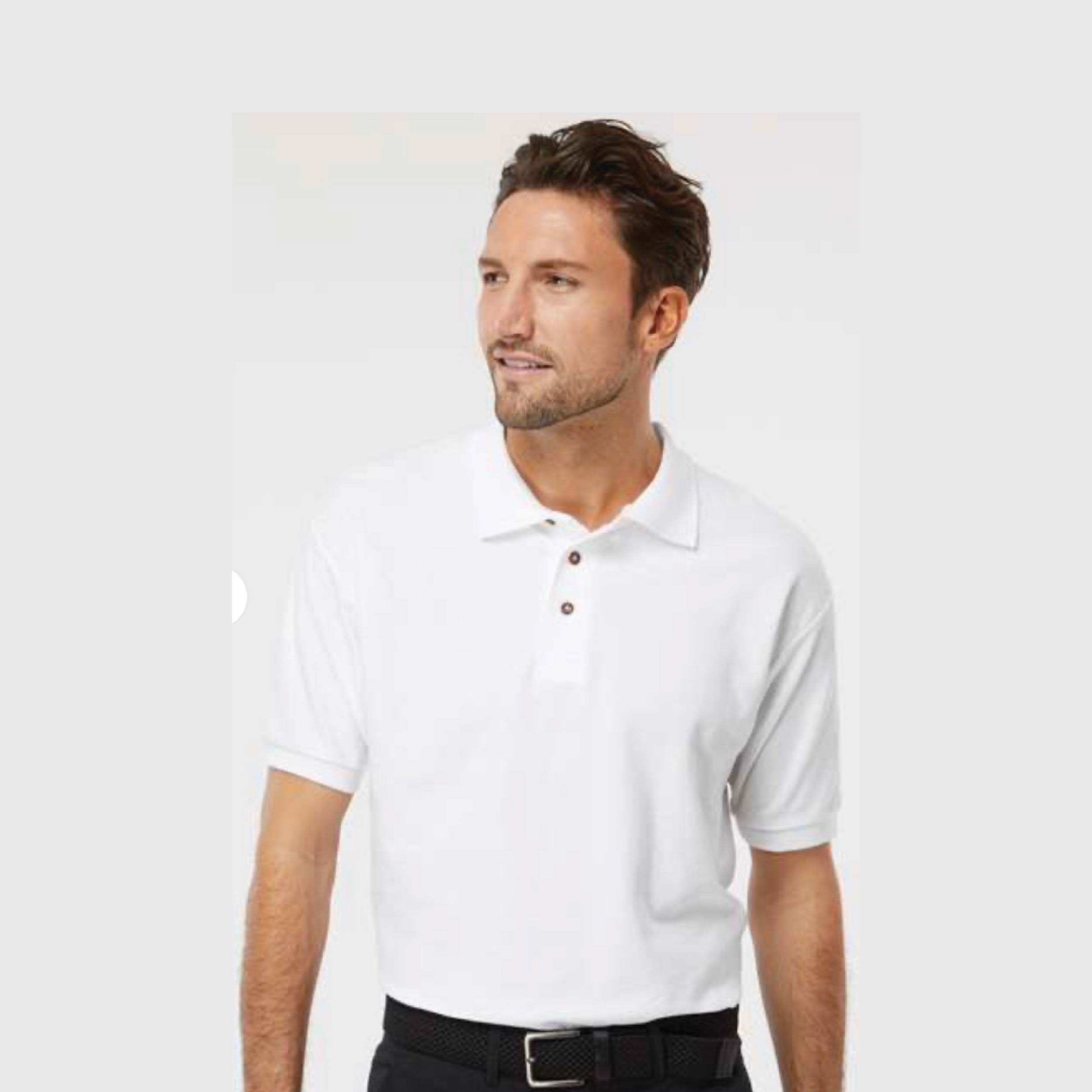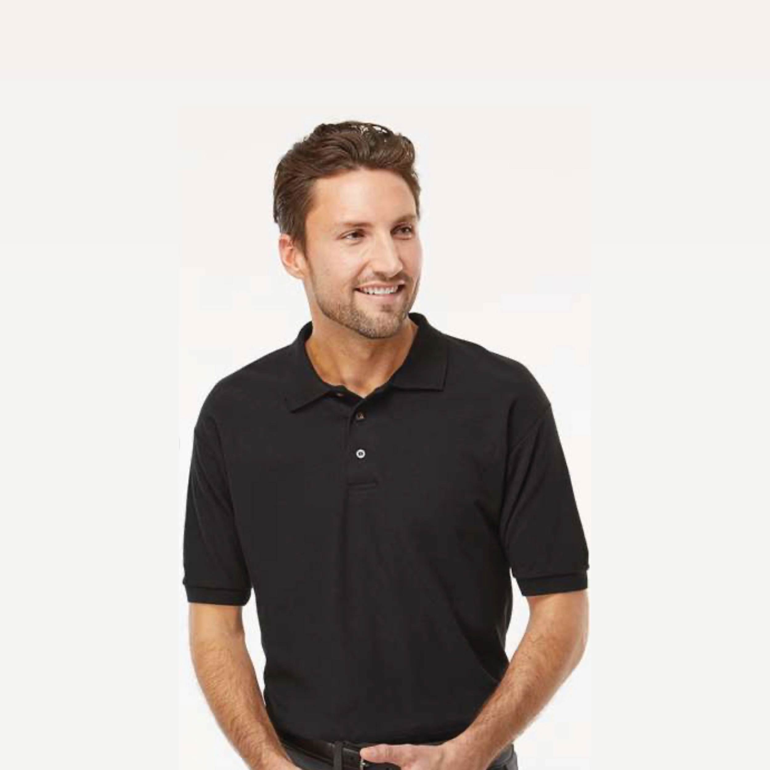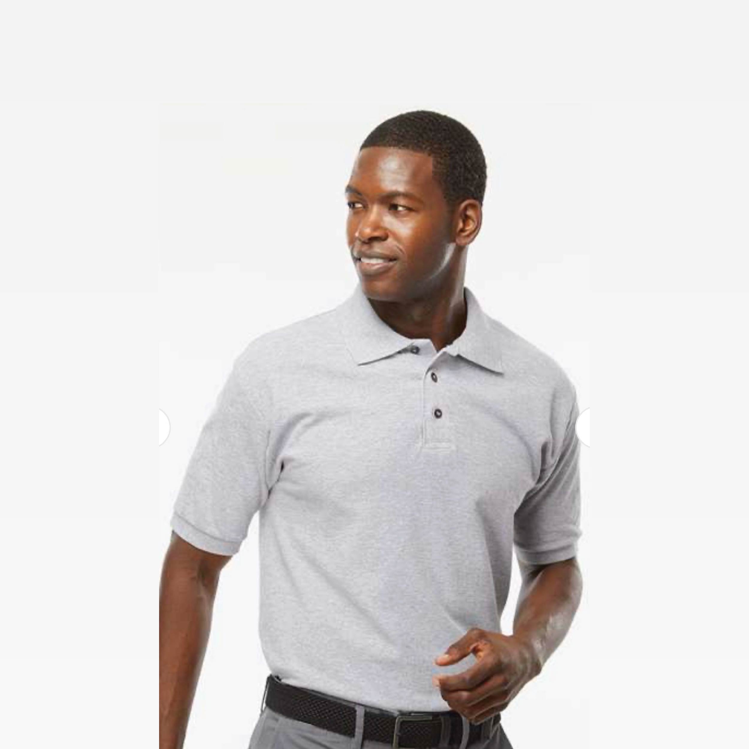 Taped shoulder-to-shoulder; Double-needle topstitched collar, cuffs, hem; Quarter-turned; Tubular